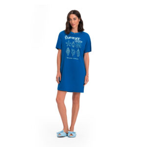 A camisola manga curta do coordenado Summer Love é perfeita para quem busca praticidade e estilo nas noites mais quentes. Confeccionada em algodão, proporciona toque macio e respirável. Em tom azul, traz estampa de conchas e a frase “Summer Love”, criando um visual descontraído e divertido. O decote arredondado e a modelagem solta garantem conforto absoluto. Uma peça leve e encantadora para relaxar com leveza e bem-estar.