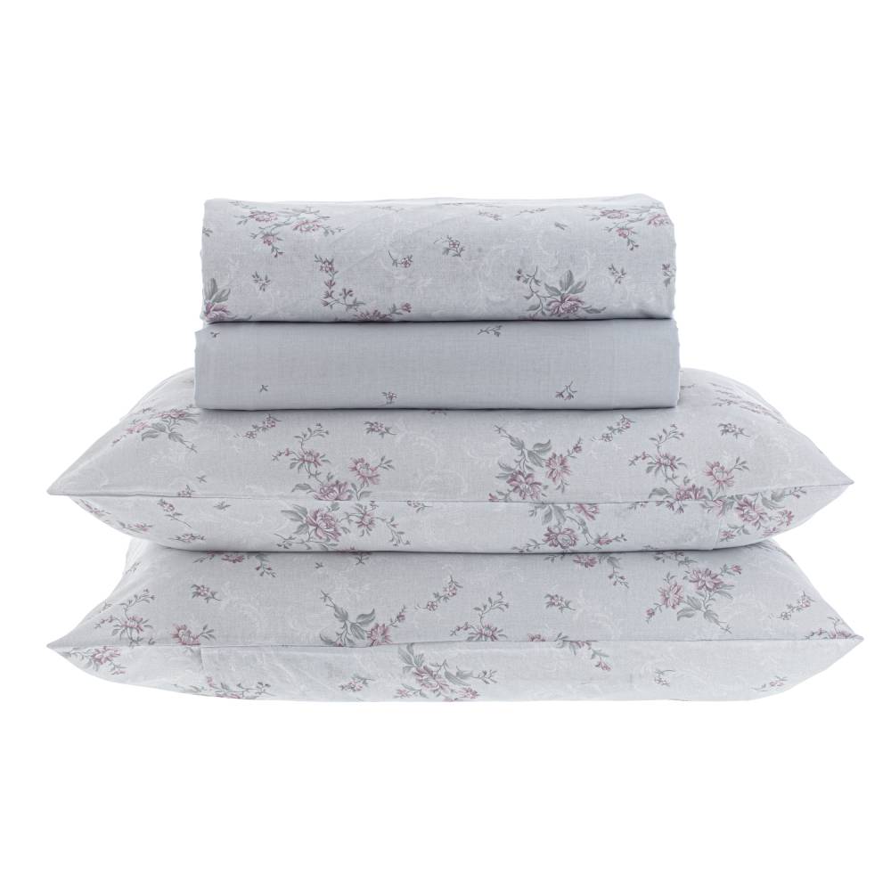 01 Lençol simples 2,40 x 2,40 m; 01 Lençol c/ elástico 1,58 x 1,98 x 0,38 m; 02 fronhas 50 x 70 cm