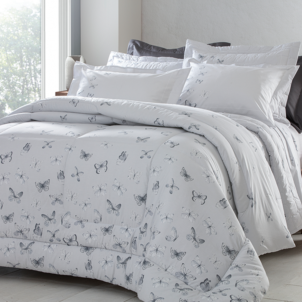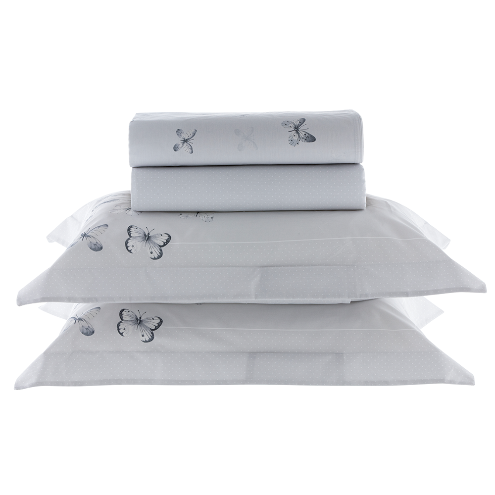 Queen – 01 Lençol c/ vira 2,40 x 2,50 m; 01 Lençol c/ elástico 1,60 x 2,00 x 0,30 m; 02 Fronhas 50 x 70 cm