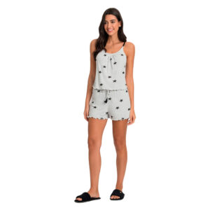 Pijama de Alça Feminino Mescla com Estampa de Estrela