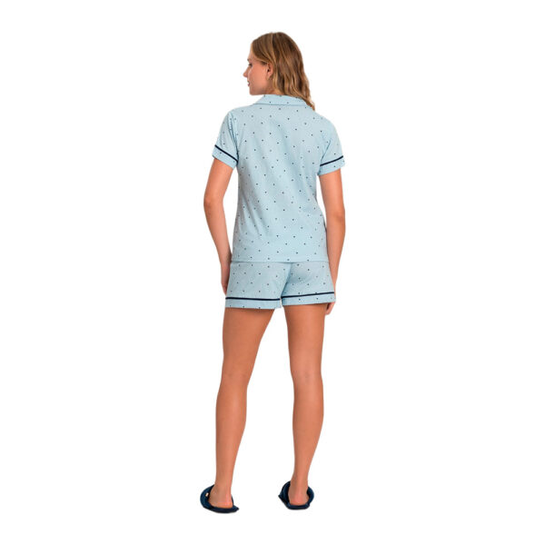 Pijama Manga Curta Americano Feminino Azul Claro com Listras e Estampa Coração