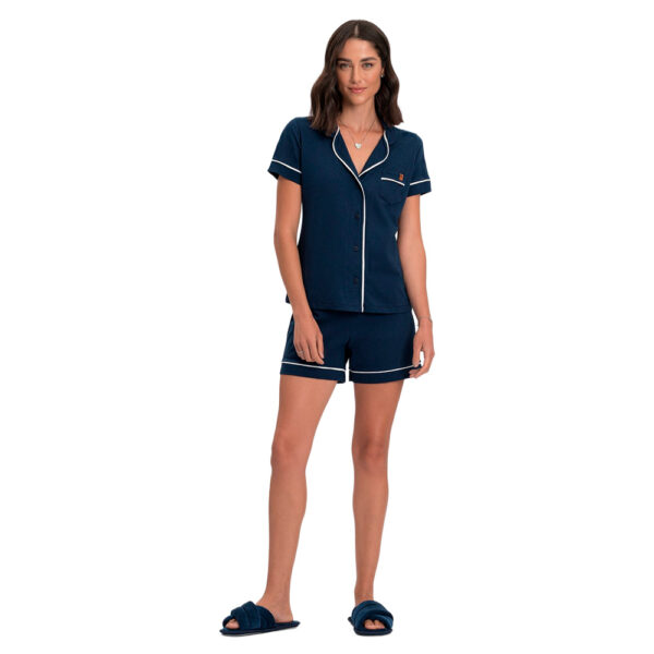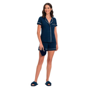Pijama Manga Curta Americano Feminino Azul com Creme