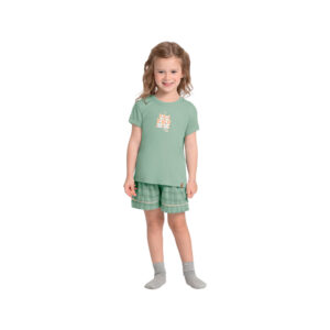 Pijama Manga Curta Baby Feminino Verde com Xadrez