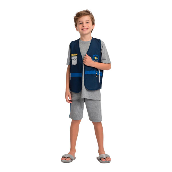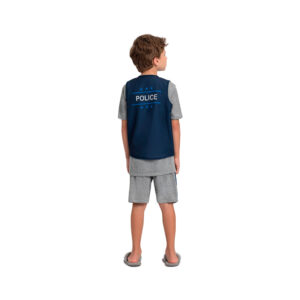 Pijama Manga curta + Colete Infantil Masculino Cinza e Azul Estampa Policia