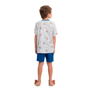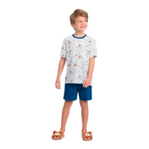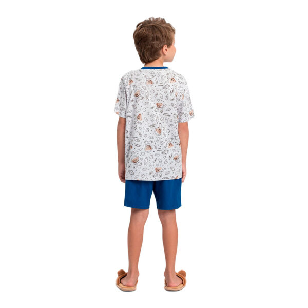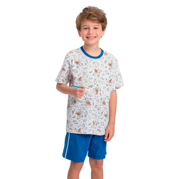 Pijama Manga Curta Infantil Masculino Estampa Urso no Espaço Para Colorir