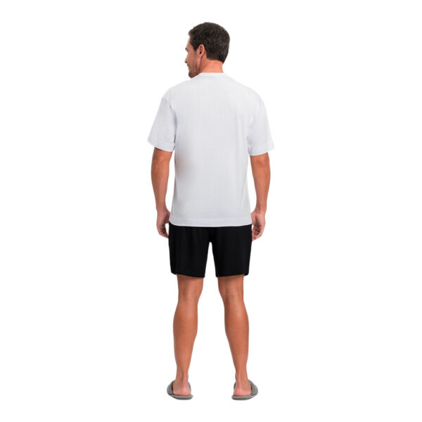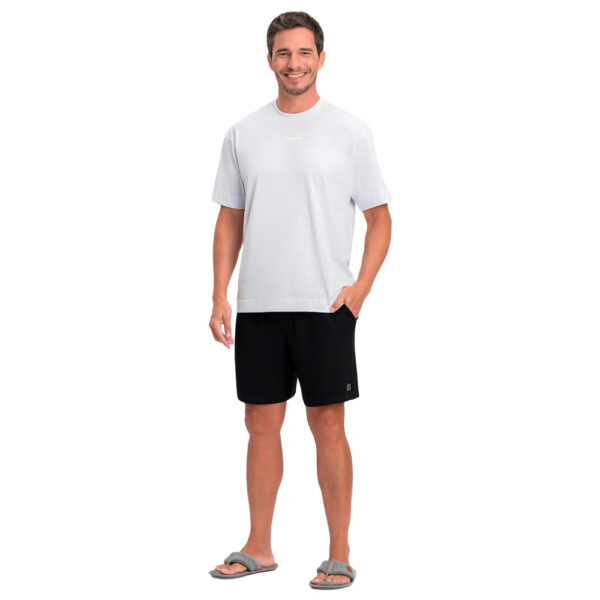 O pijama masculino do coordenado Urbano combina estilo e conforto com um toque casual ideal para o dia a dia. A blusa branca de manga curta é confeccionada em 100% algodão e traz estampa frontal com a palavra “Urbano”, traduzindo modernidade e autenticidade. O shorts preto em molecotton completa o conjunto com modelagem confortável, cós de elástico e bolso funcional. Um conjunto versátil e estiloso que oferece liberdade de movimento e praticidade.