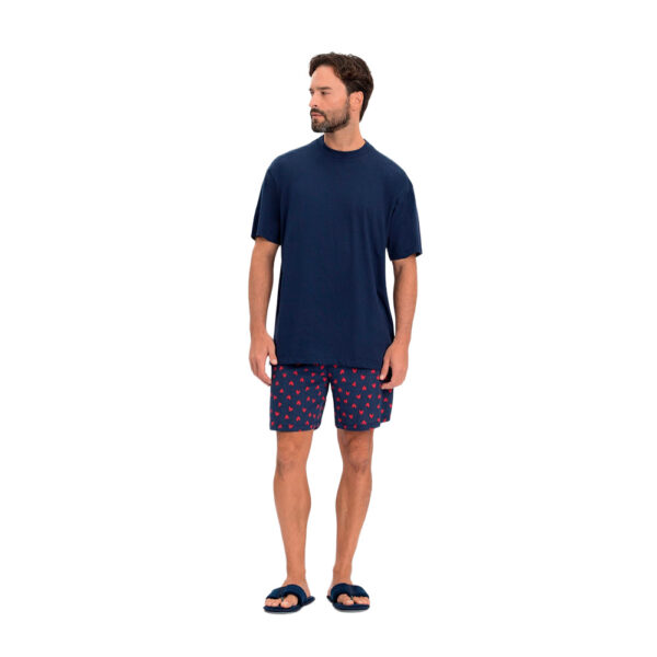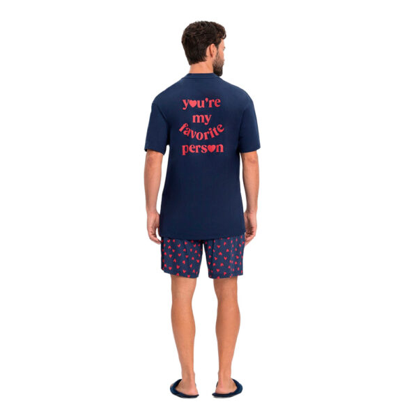 Pijama Manga Curta Masculino Marinho Com Estampa Corações