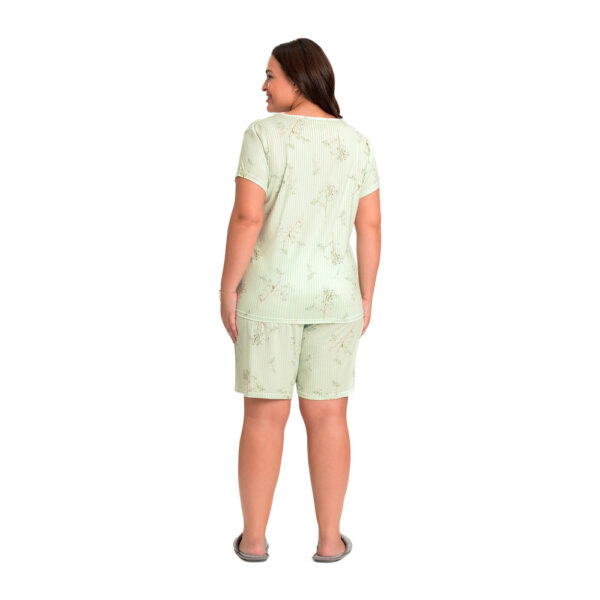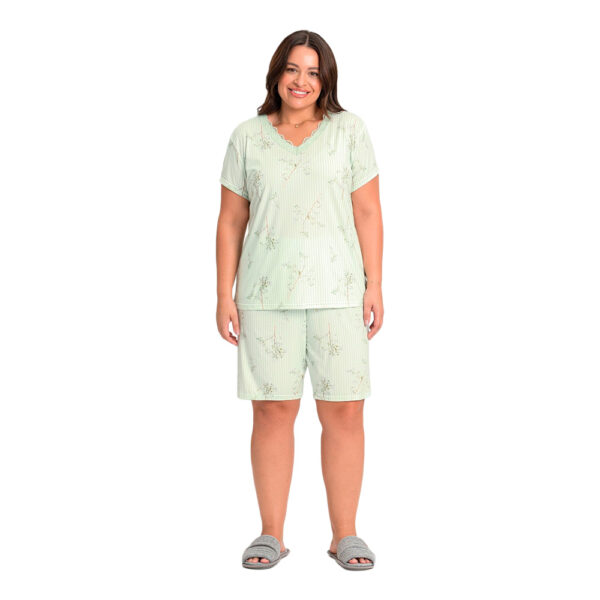 Pijama Manga Curta Plus Size Feminino Listrado Verde com Estampa Floral