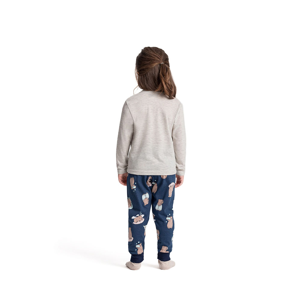 Pijama Manga Longa Infantil Masculino Mescla Creme com Estampa Capivaras