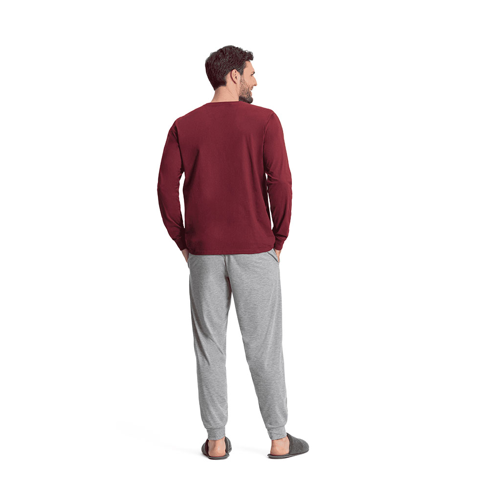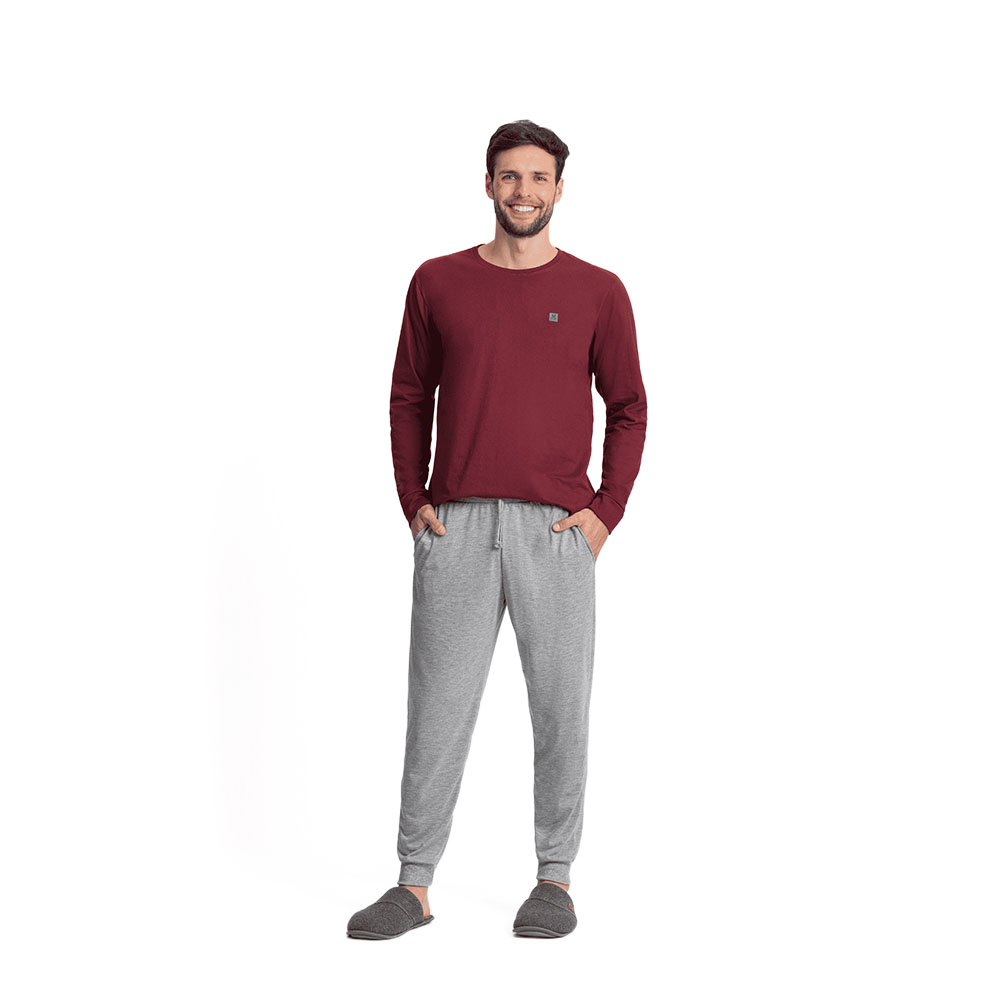 Pijama Manga Longa Masculino Vinho e Cinza Mescla